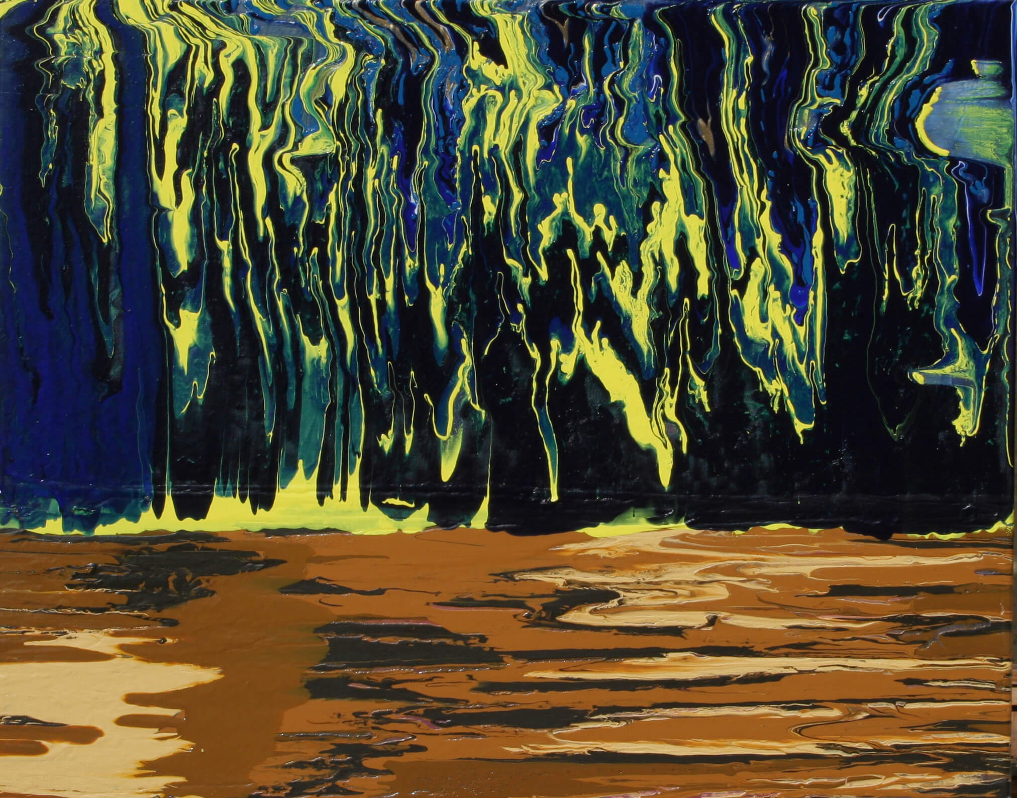 “RALPH WHITE of Redondo Beach, California has a special style in his ability to make acrylic work for his intentions. This is wonderfully developed in his recent work “Mystic Forest” – a rather large piece extending seventy-two inches in width. The rich textural qualities and the multi-colored abstracted trees make for a wonderfully strong painting.”